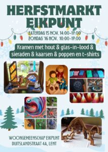 Op zaterdag 15 en zondag 16 november 2025 is weer de bekende herfstmarkt op Eikpunt.